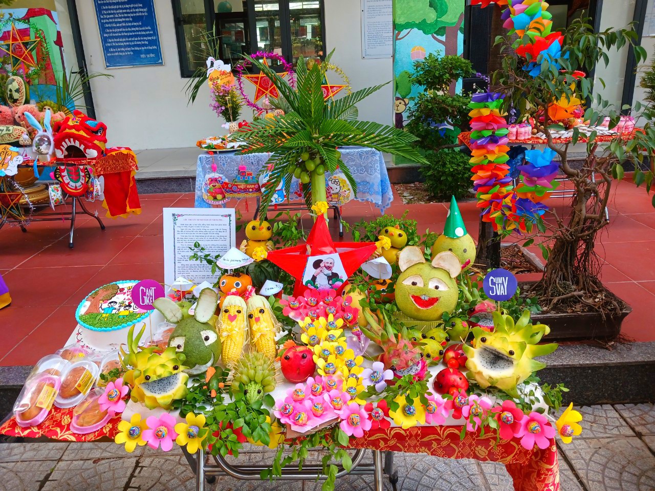 Dịp tết trung thu này, các em học sinh của các lớp không chỉ chuẩn bị mâm cỗ trưng bày những sản vật của địa phương mà còn thể hiện sự khéo léo của đôi tay qua việc thiết kế những chiếc đèn ông sao, những con vật hết sức ngộ nghĩnh mang đậm màu sắc dân gian. Mâm cỗ Trung Thu mang đậm ý nghĩa và biểu tượng về ngày trung thu được các em học sinh ở các khối lớp cùng bàn tay khéo léo của các bậc phụ huynh trang trí rất đẹp mắt. Mỗi lớp một kiểu, mỗi lớp một ý tưởng khác nhau nhưng đều mang một cảm giác thân quen, ấm cúng. Các bậc phụ huynh, học sinh và các thầy cô giáo cùng nhau trang trí và làm ra những mâm cỗ trung thu rất đẹp mắt, công phu và tỉ mỉ mang đậm phong cách riêng của từng lớp.